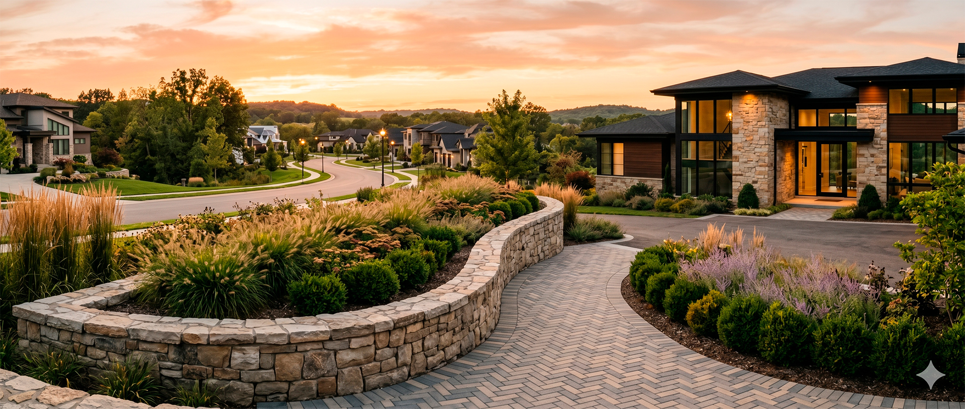 Landscape and hardscape under one roof — one bid, one schedule, one number to call when anything on the exterior needs attention.